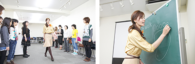 ウォーキングスペースを作った会場で、今年度のミセス日本グランプリに輝いた山口真歩先生を講師に迎え、まずは立ち姿や姿勢の写真を参加者同士携帯電話で撮影、教わった後の姿と比べました。「ウォーキングは、全身の筋肉を使うトレーニングです。」先生の後について繰り返しウォークすると、だんだんみちがえるように。最後はカフェストリートへ行き実際に歩いてみました。皆さんの颯爽とした歩き方は、早速効果アリでした。